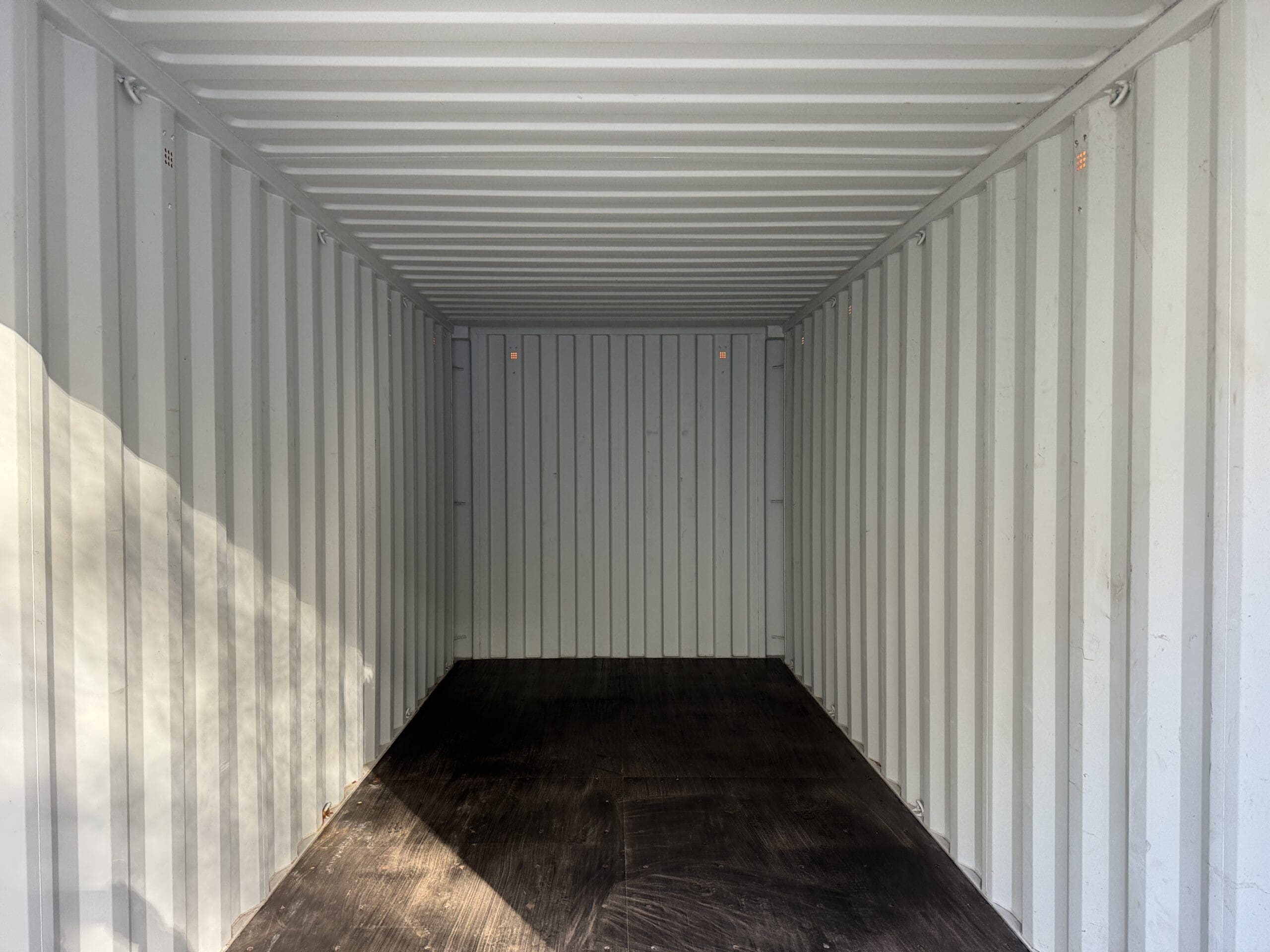 We sell 10’, 16′, 20’, 24′, 30′, and 40’ long containers. Containers are 8’6″ tall unless it is a high cube shipping container, then it is 9’6″ tall.