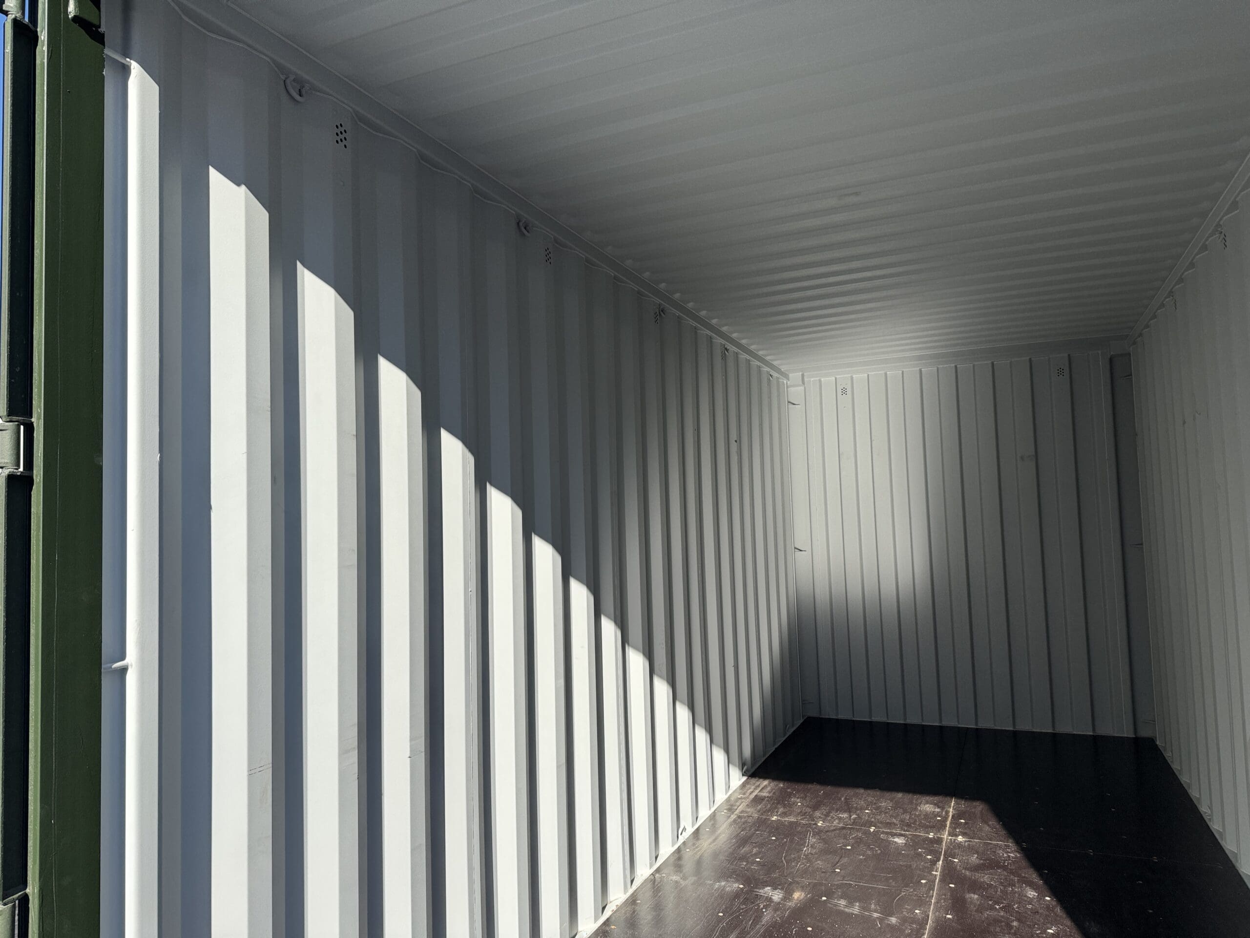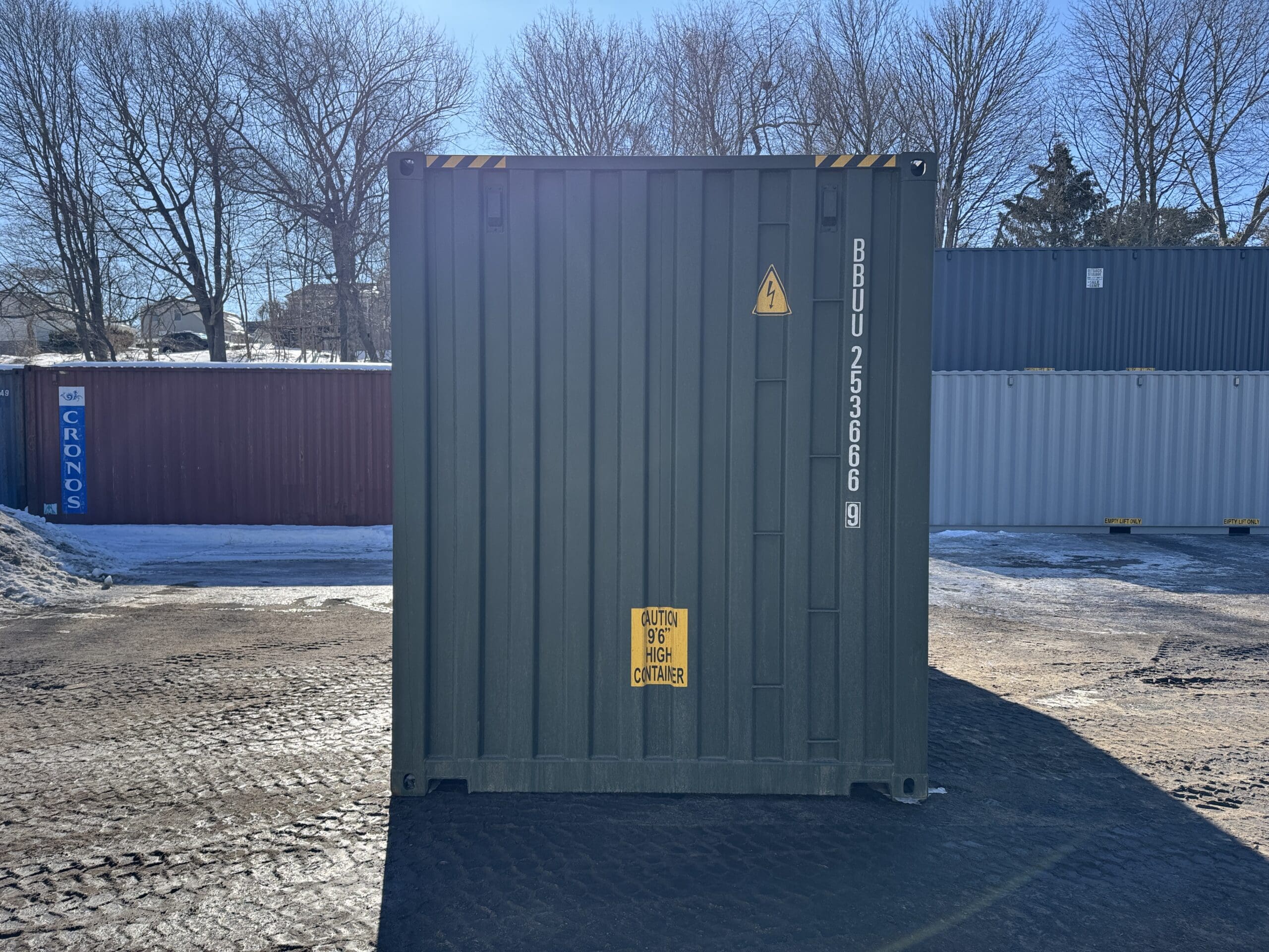 We sell 10’, 16′, 20’, 24′, 30′, and 40’ long containers. Containers are 8’6″ tall unless it is a high cube shipping container, then it is 9’6″ tall.