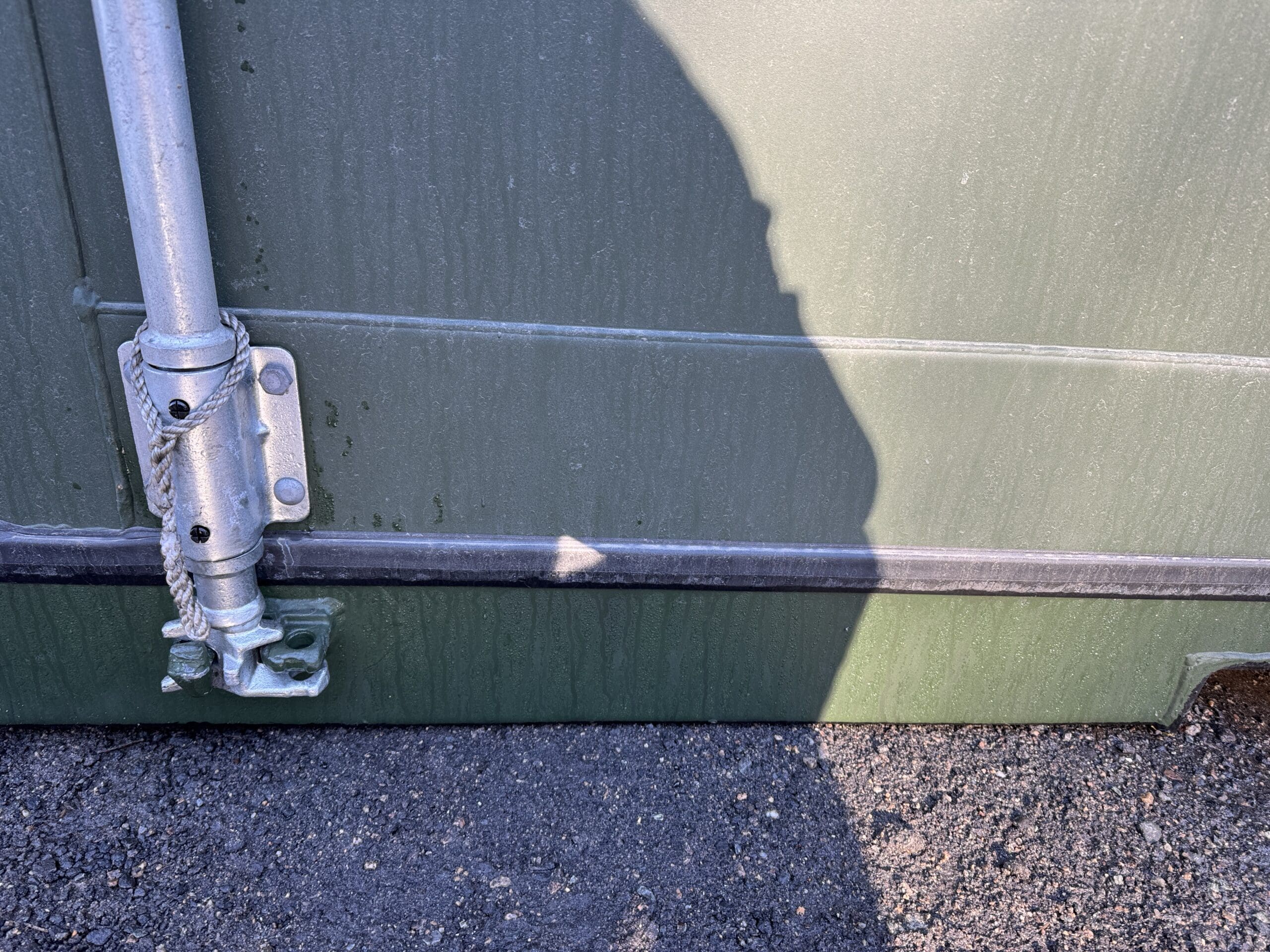 This is as new of a storage container as you can buy here in the United States. It was built new in China then shipped here to the US with a load of goods in it. Once in the US it was unloaded and then taken into our inventory to be sold.