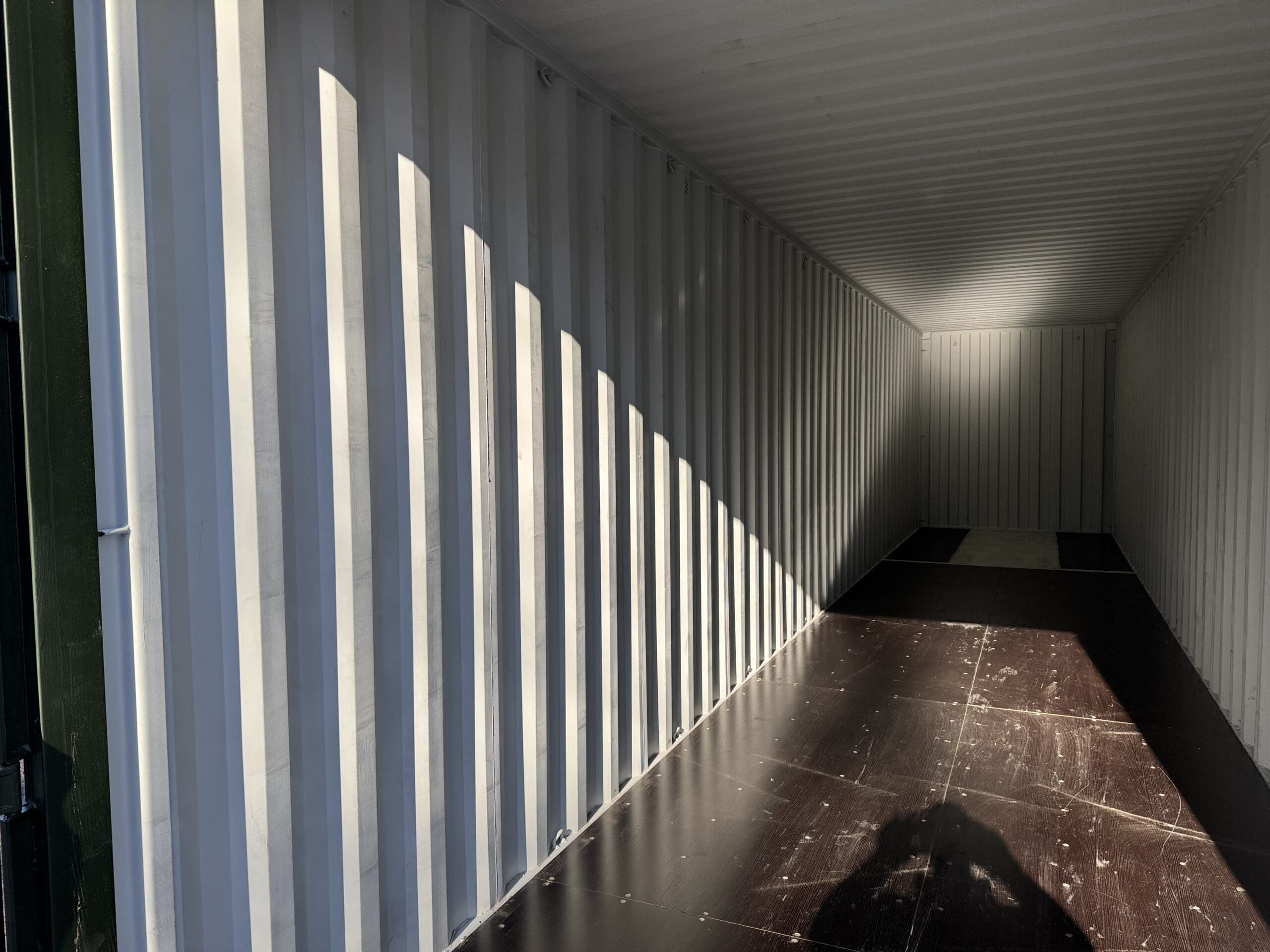 We sell 10’, 16′, 20’, 24′, 30′, and 40’ long containers. Containers are 8’6″ tall unless it is a high cube shipping container, then it is 9’6″ tall.