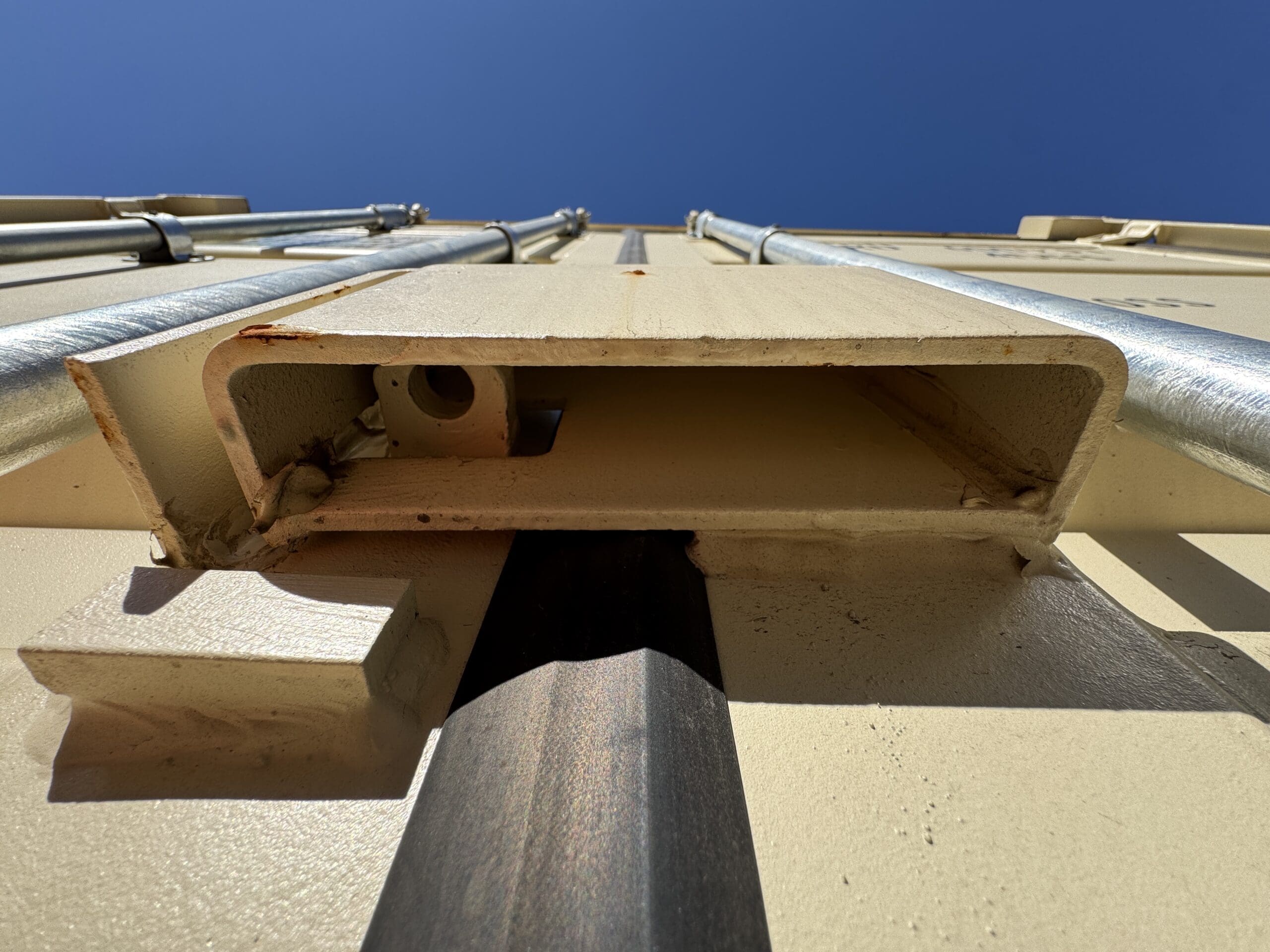 This is as new of a storage container as you can buy here in the United States. It was built new in China then shipped here to the US with a load of goods in it. Once in the US it was unloaded and then taken into our inventory to be sold.