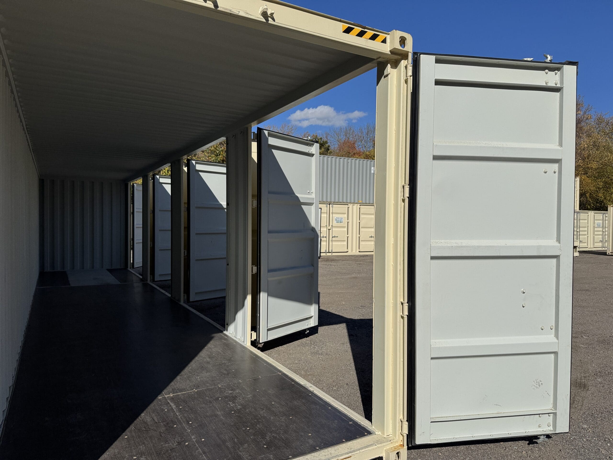 40′ x 8′ x 9.5′ Tall -New *High Cube**FOUR SIDE DOOR OPENINGS** Shipping/Storage Container – Wind and Watertight – BEIGE