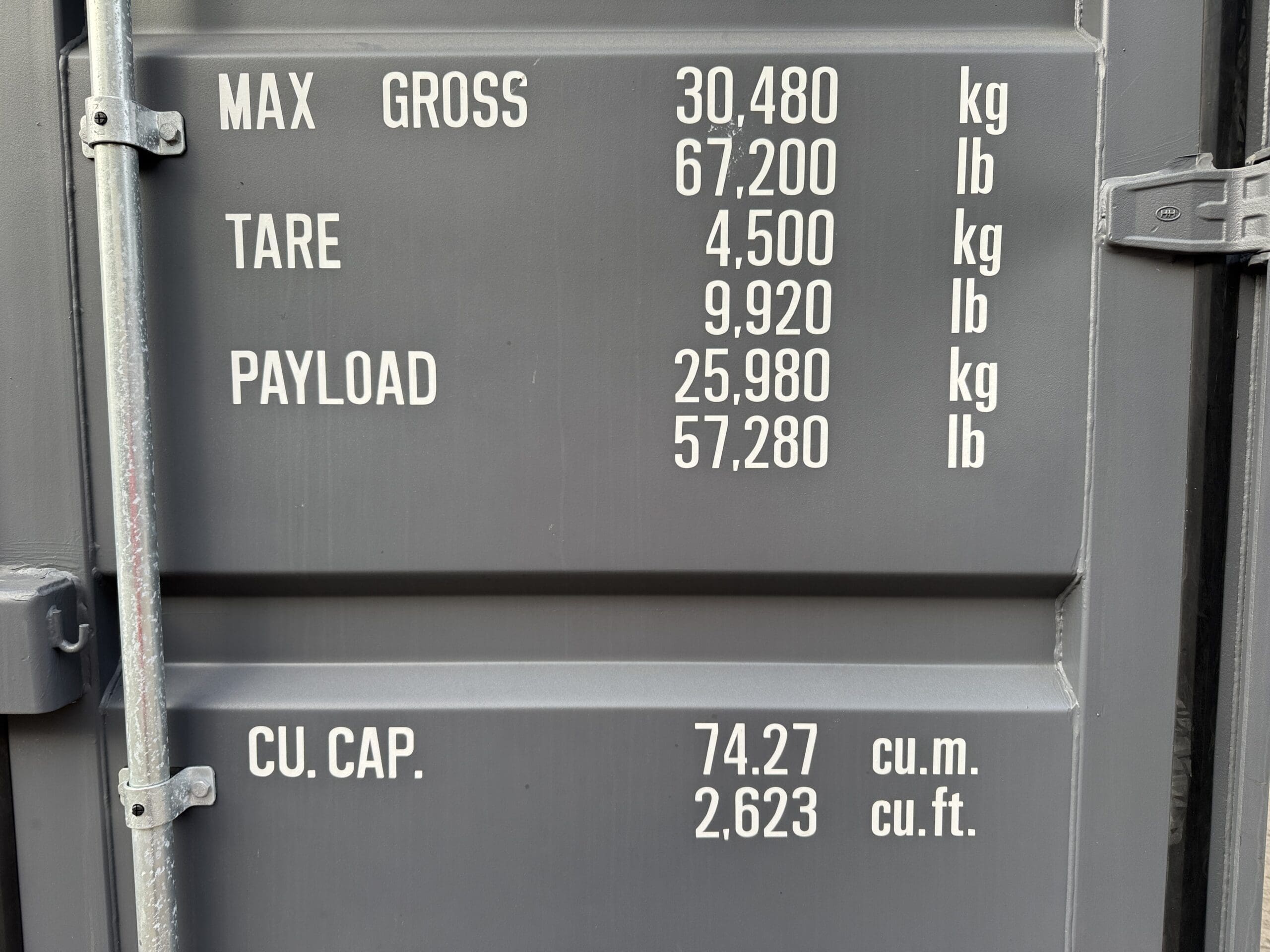 We sell 10’, 16′, 20’, 24′, 30′, and 40’ long containers. Containers are 8’6″ tall unless it is a high cube shipping container, then it is 9’6″ tall.