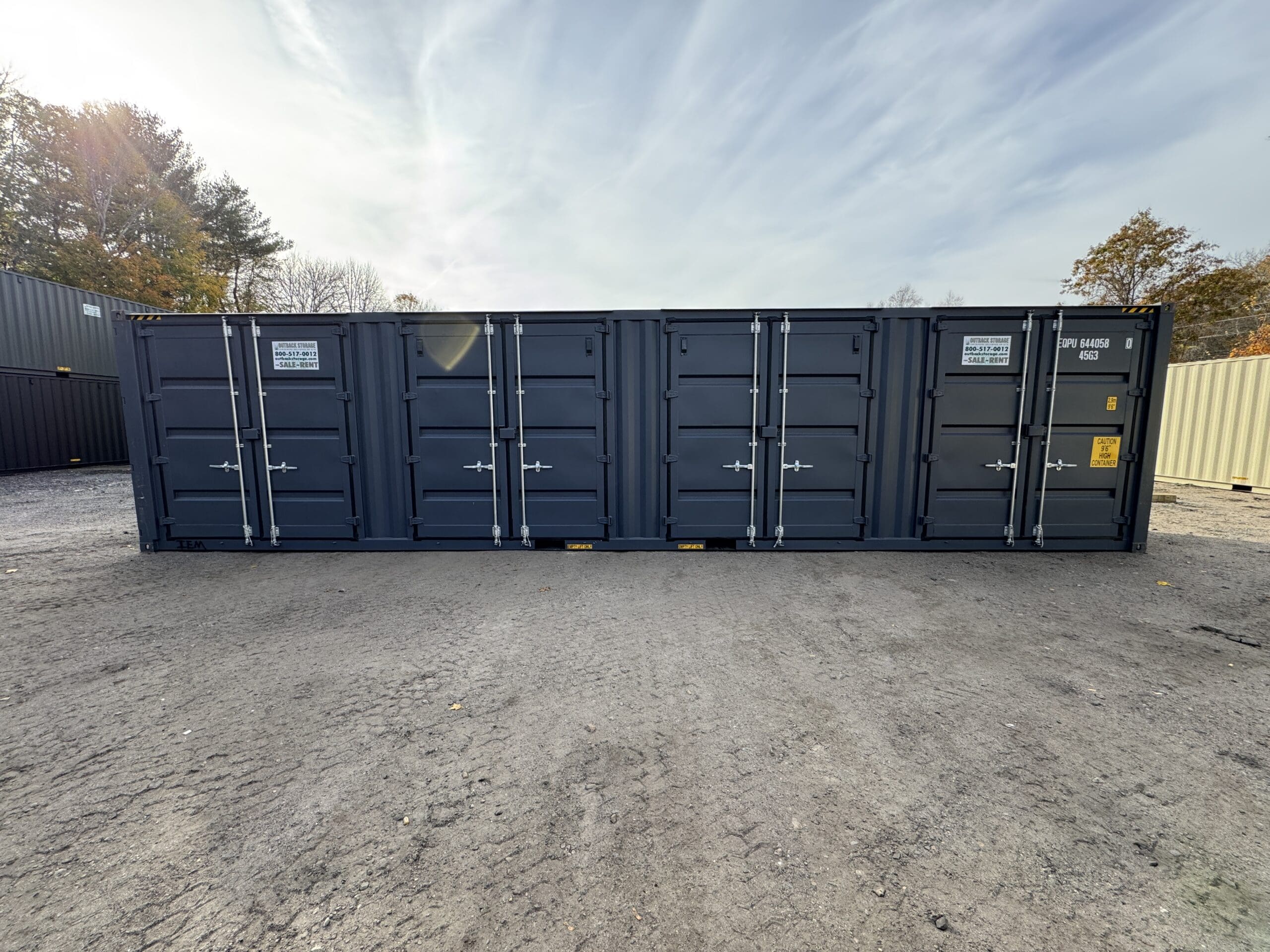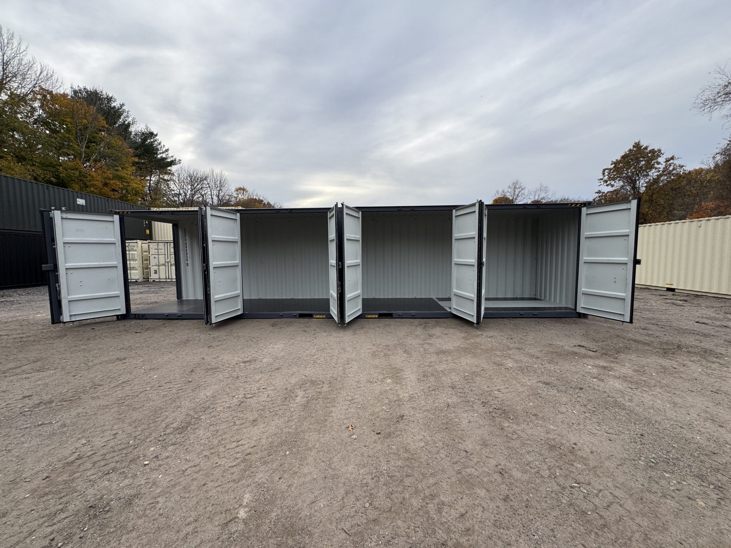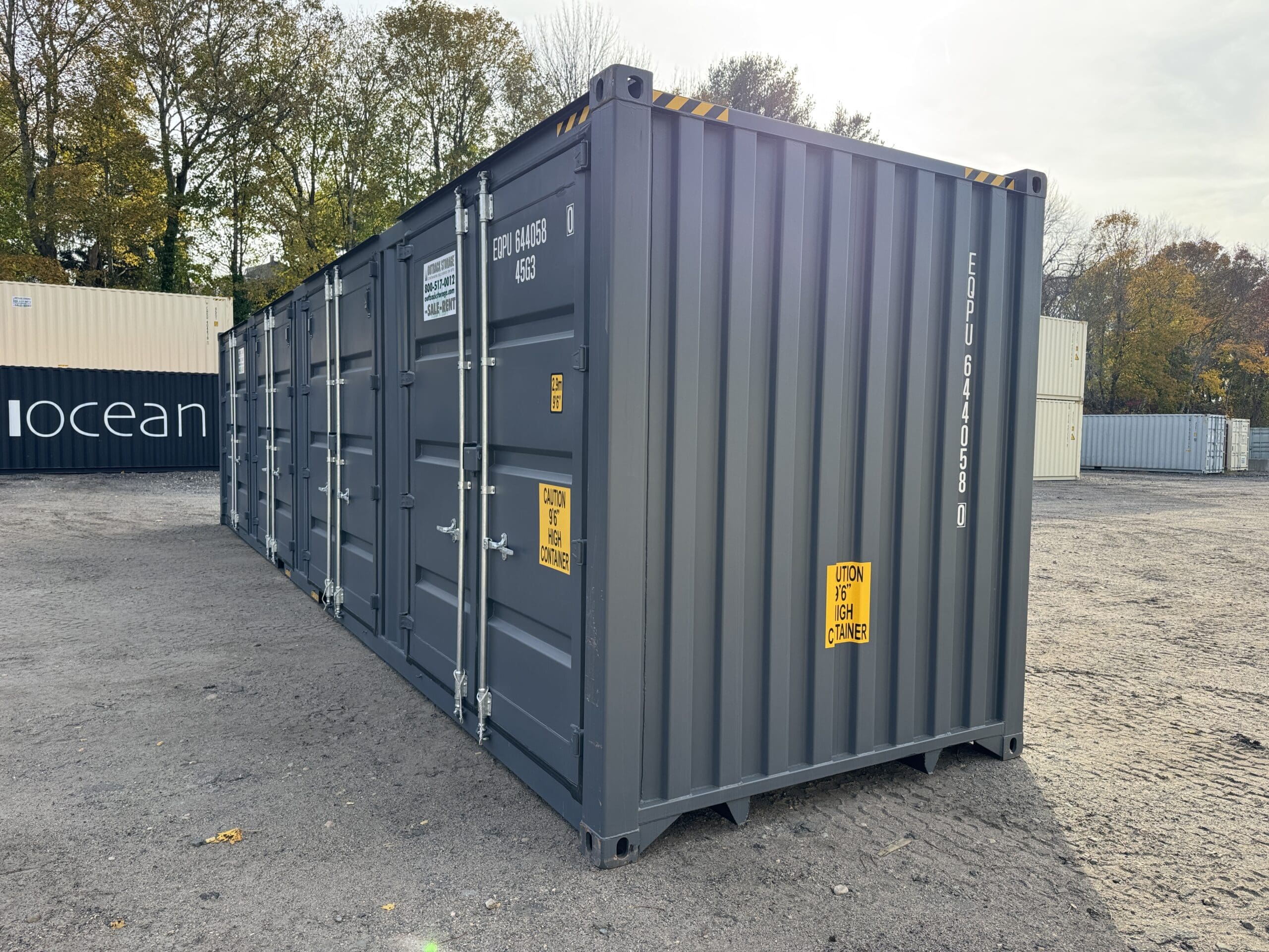40′ x 8′ x 9.5′ Tall -New *High Cube**FOUR SIDE DOOR OPENINGS** Shipping/Storage Container – Wind and Watertight – DARK GRAY