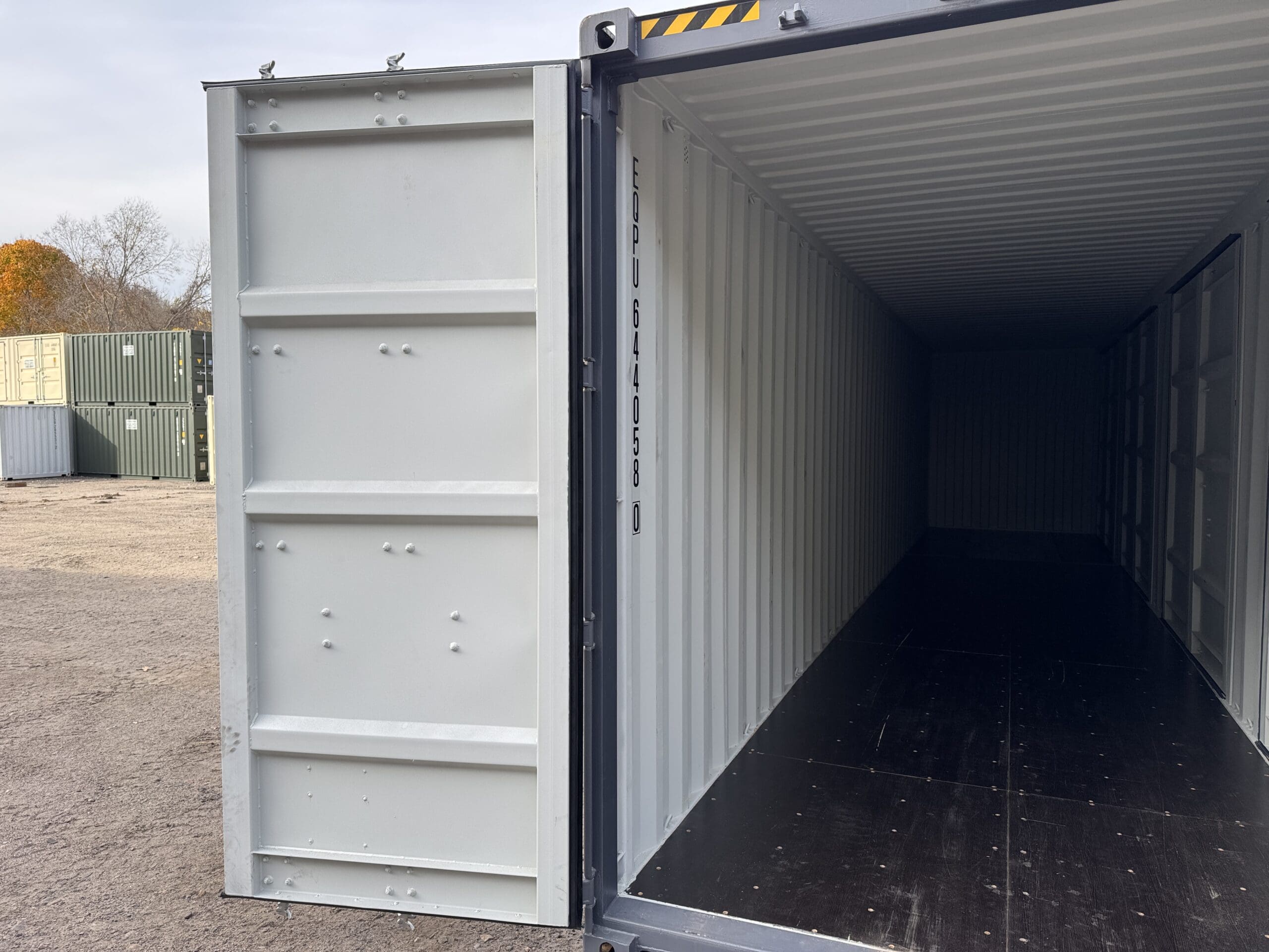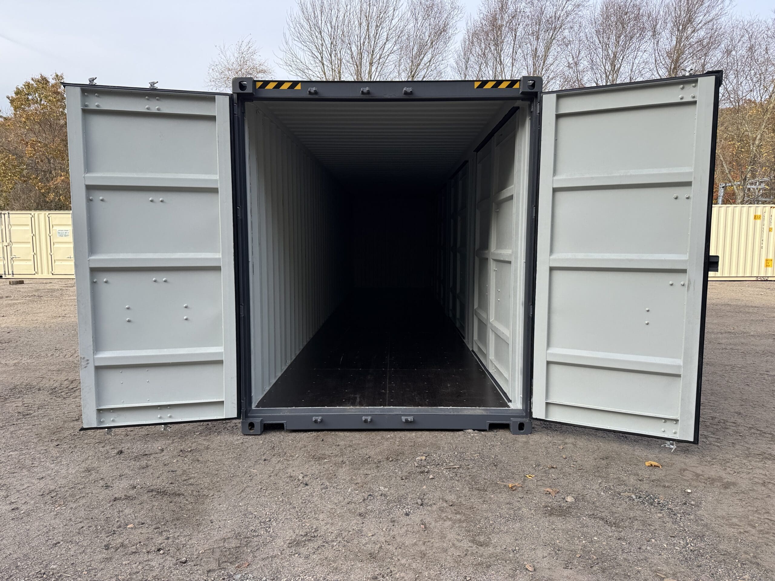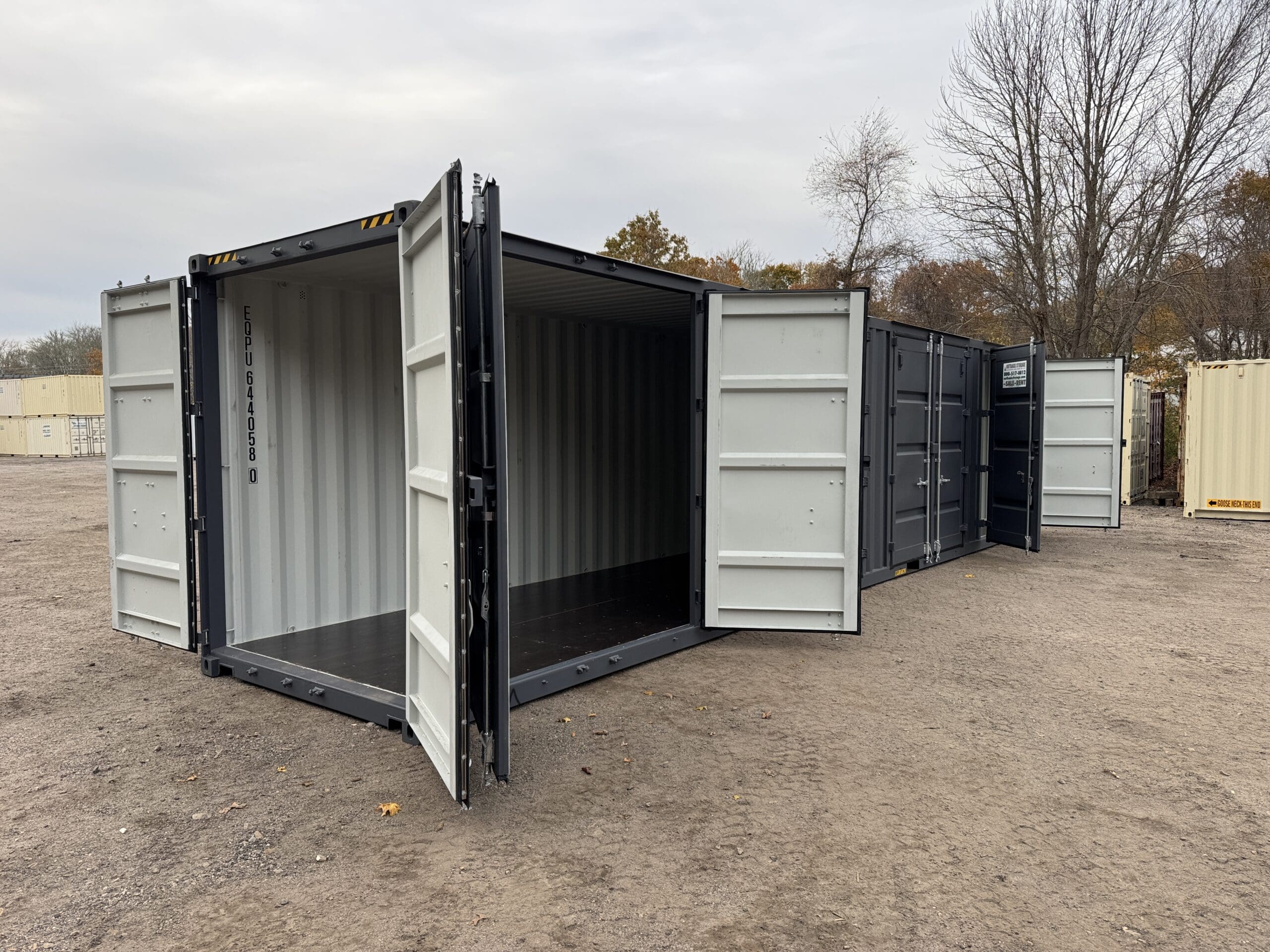 40′ x 8′ x 9.5′ Tall -New *High Cube**FOUR SIDE DOOR OPENINGS** Shipping/Storage Container – Wind and Watertight – DARK GRAY
