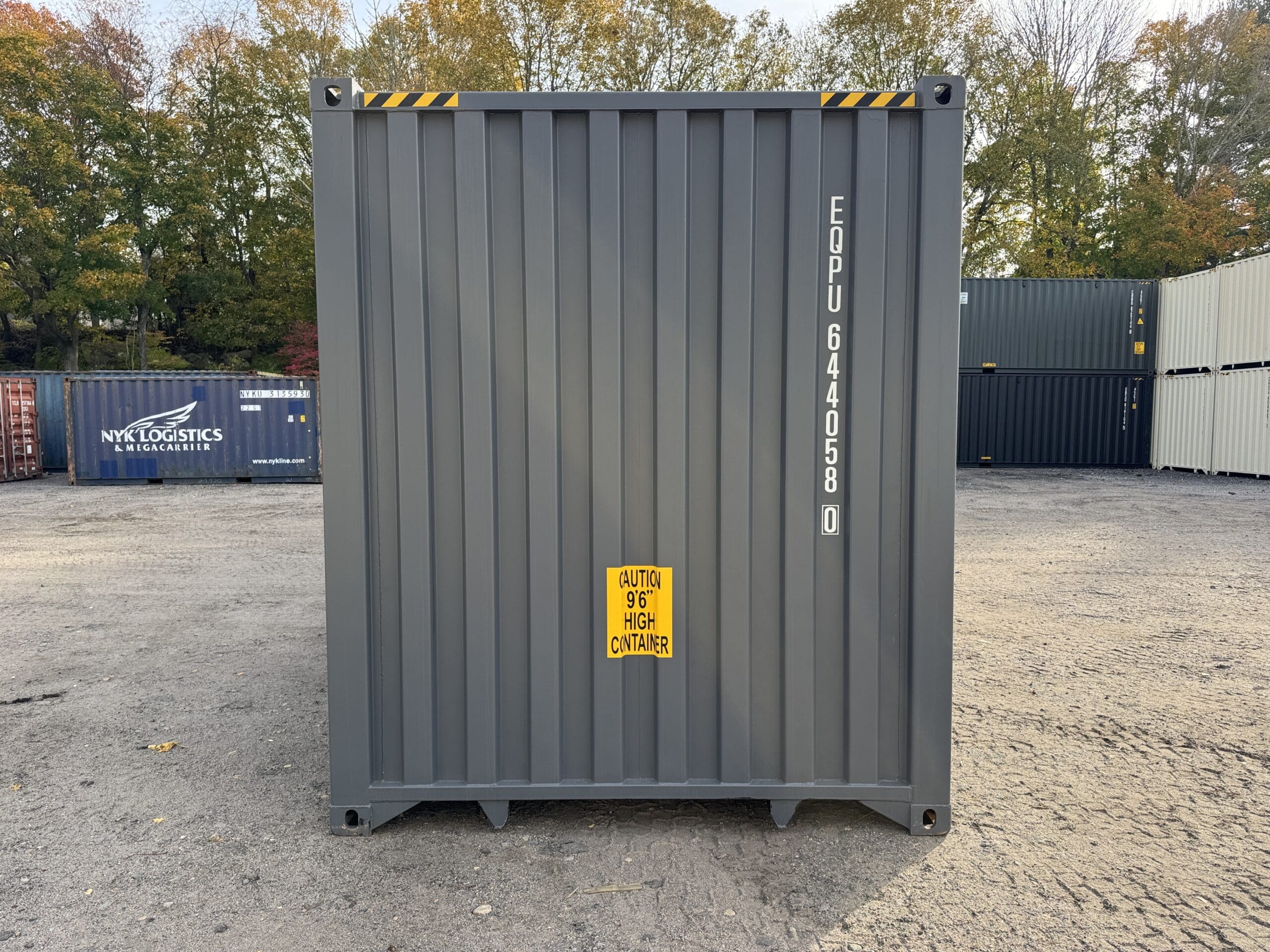 We sell 10’, 20’, and 40’ long containers. Most containers are 8’6 tall but we also have 9’6 tall containers called high cube containers.