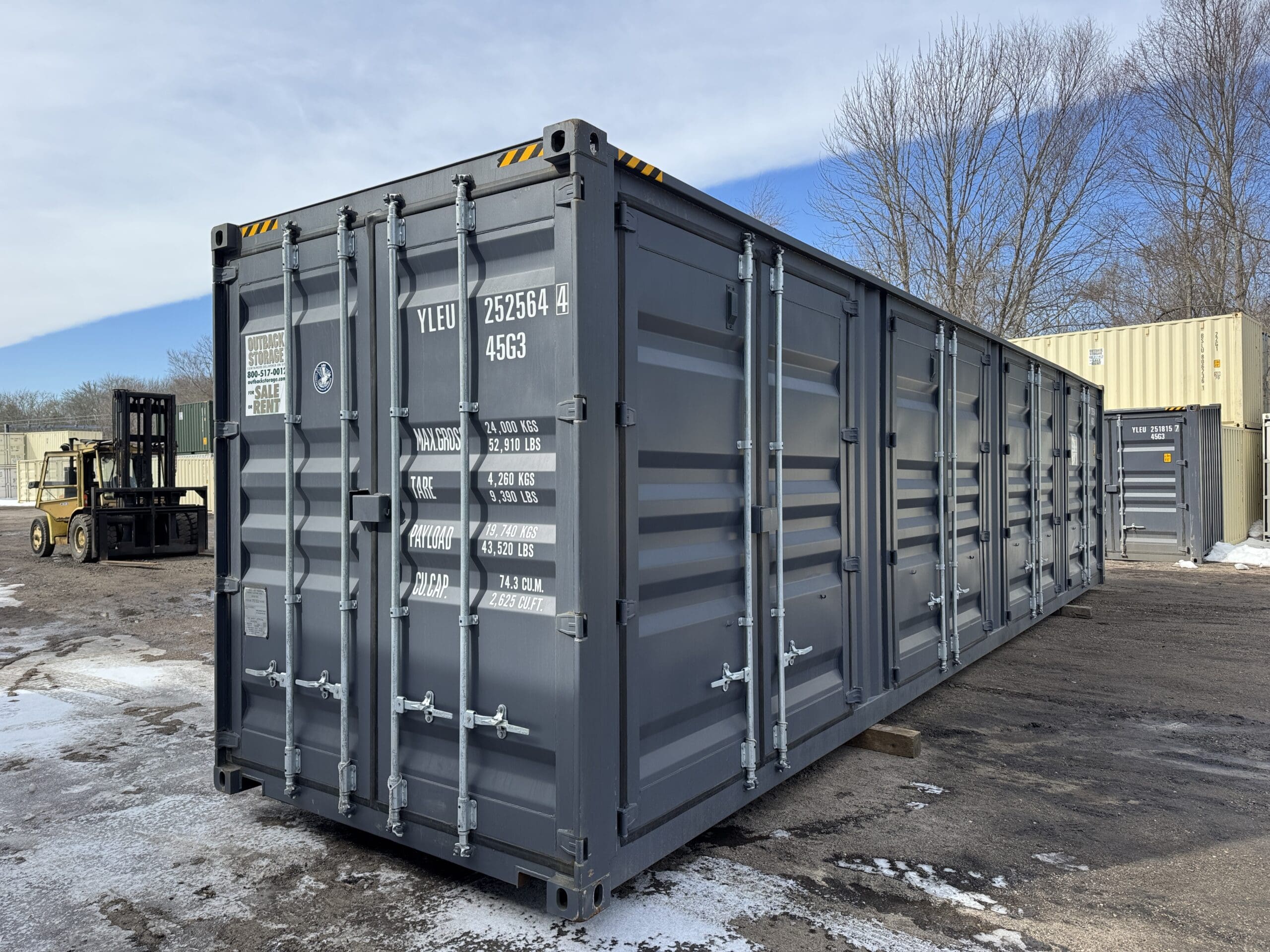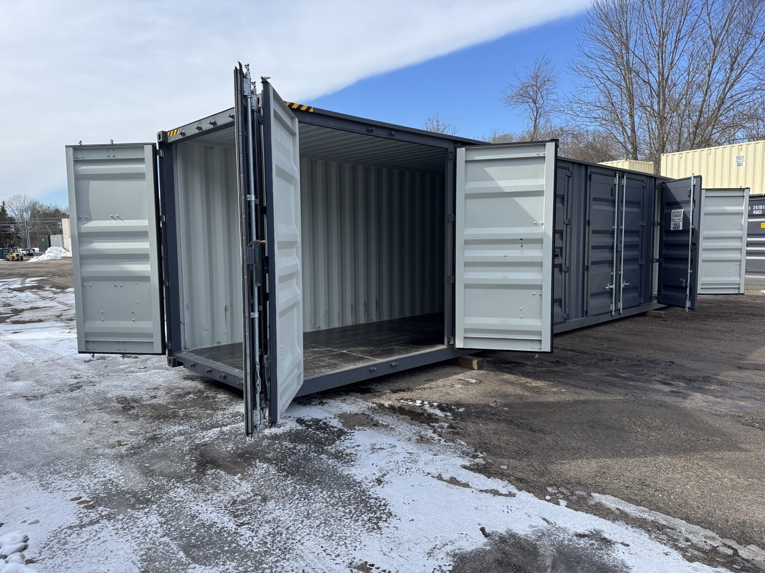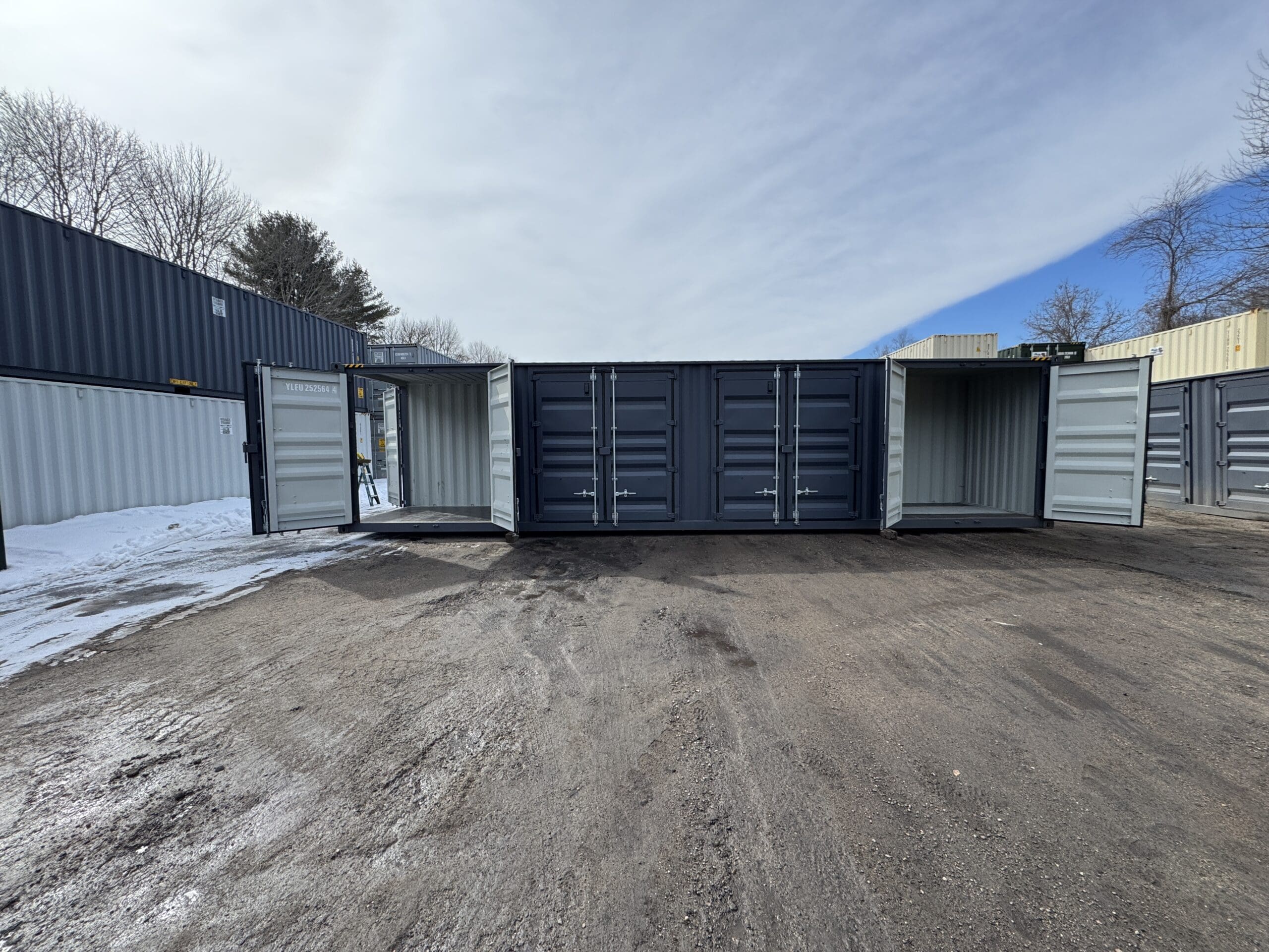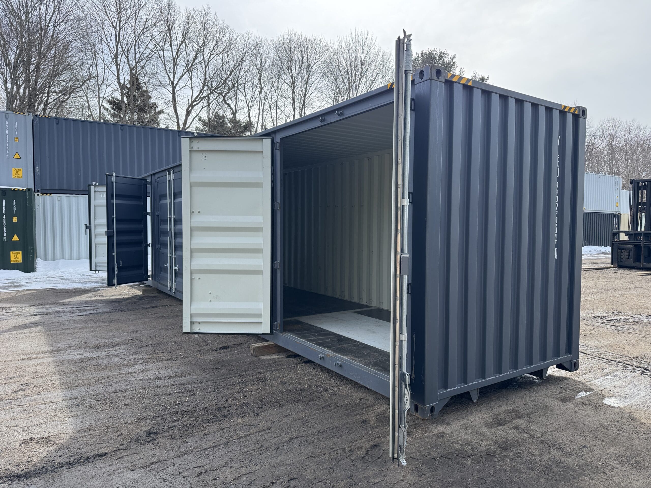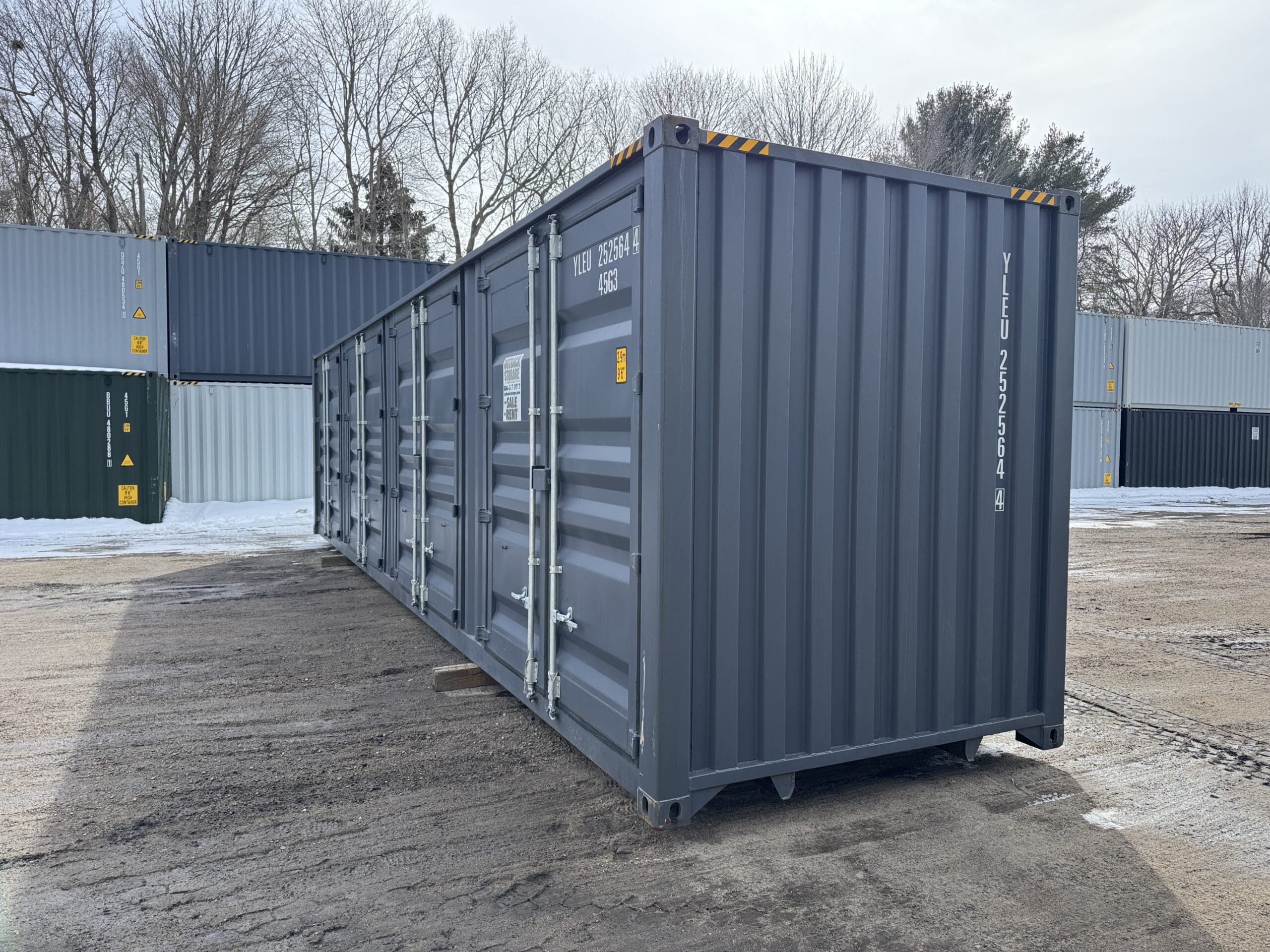 40′ x 8′ x 9.5′ Tall -New *High Cube**FOUR SIDE DOOR OPENINGS** Shipping/Storage Container – Wind and Watertight – DK GRAY