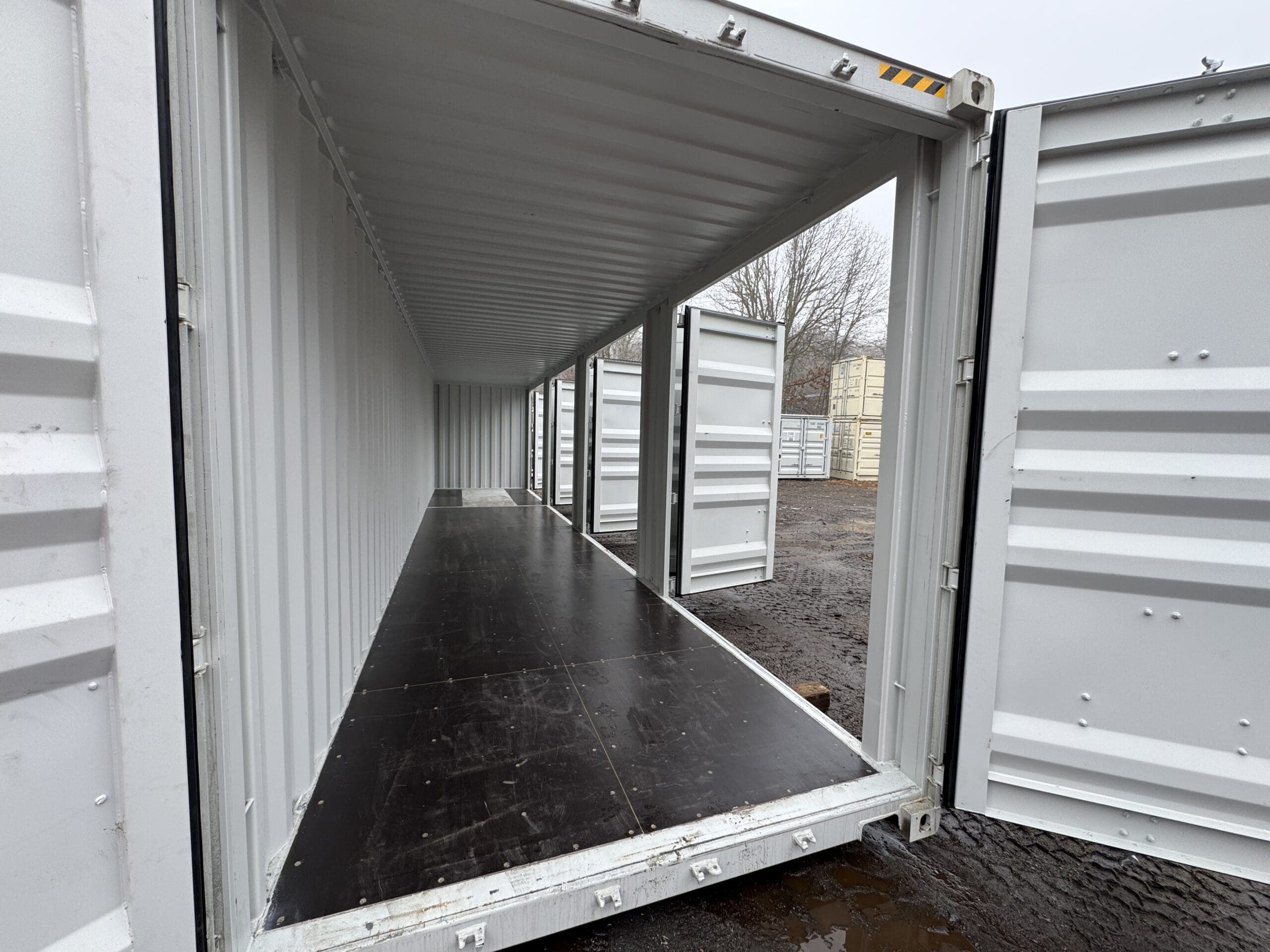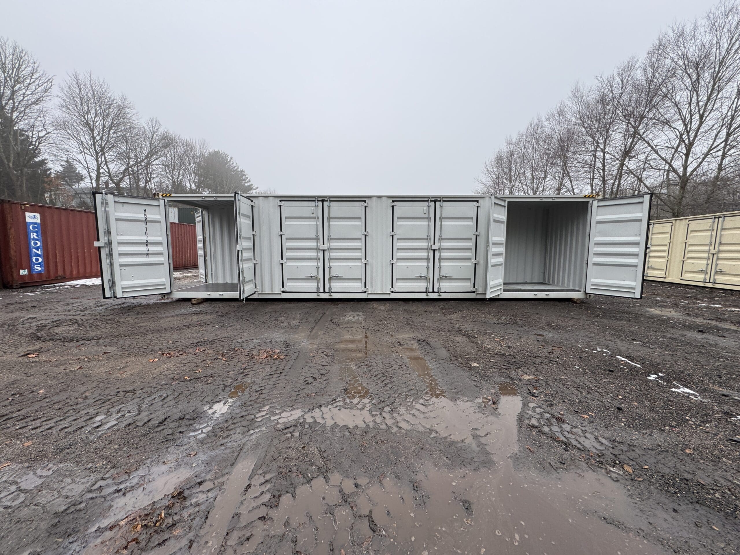 40′ x 8′ x 9.5′ Tall -New *High Cube**FOUR SIDE DOOR OPENINGS** Shipping/Storage Container – Wind and Watertight – GRAY