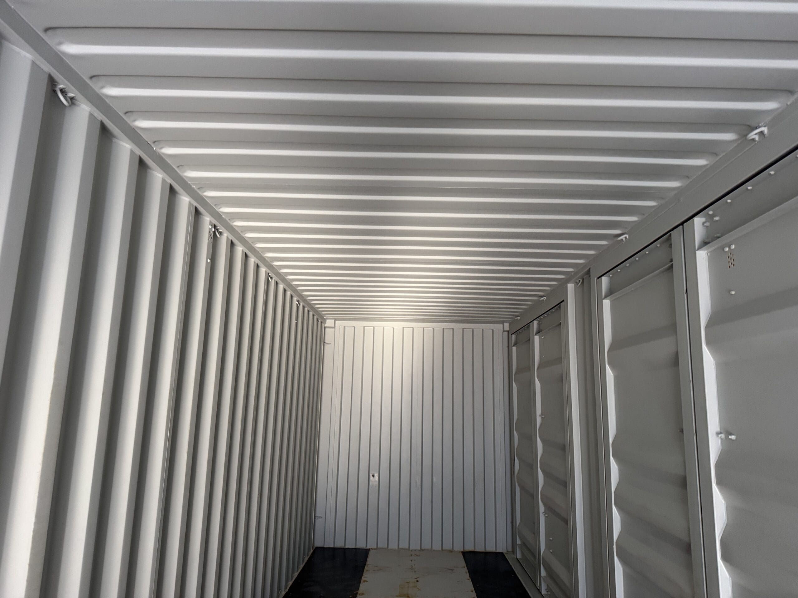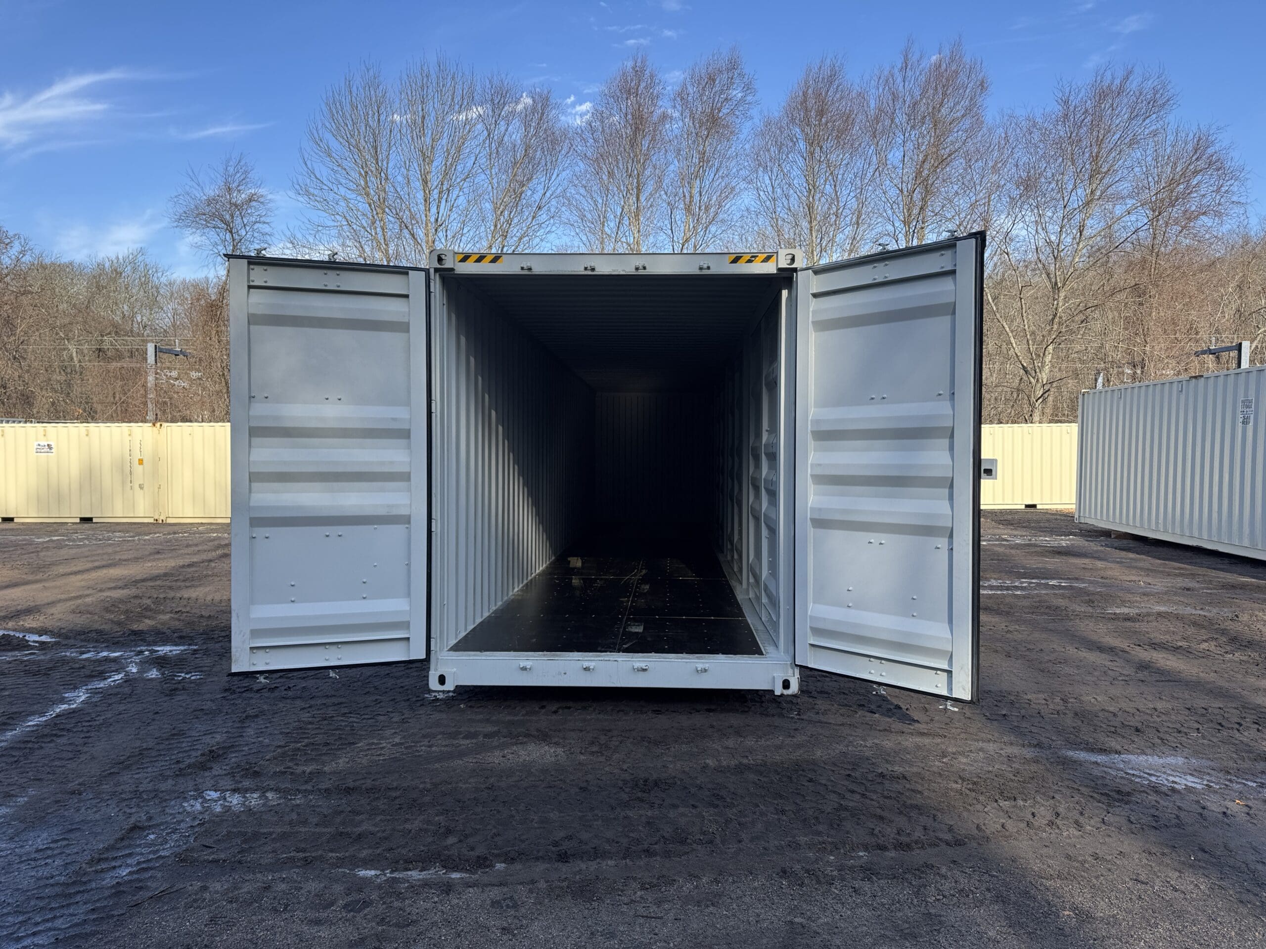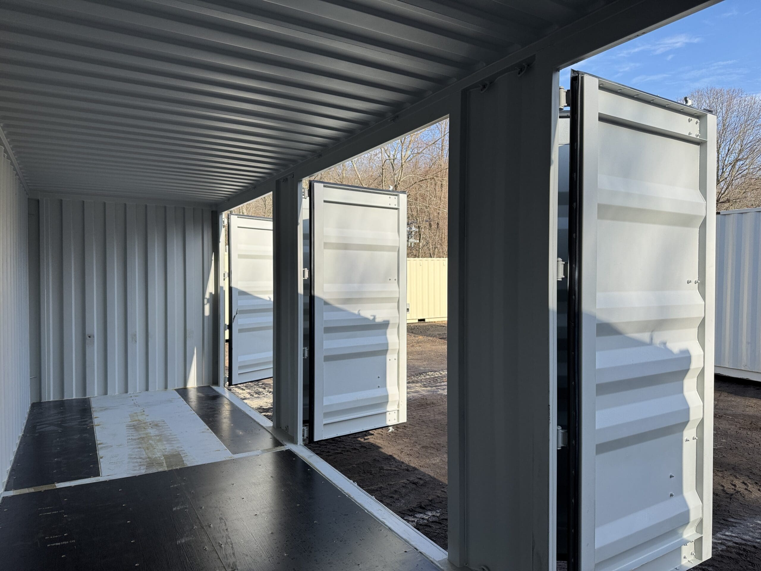40′ x 8′ x 9.5′ Tall -New *High Cube**FOUR SIDE DOOR OPENINGS** Shipping/Storage Container – Wind and Watertight – LT GRAY