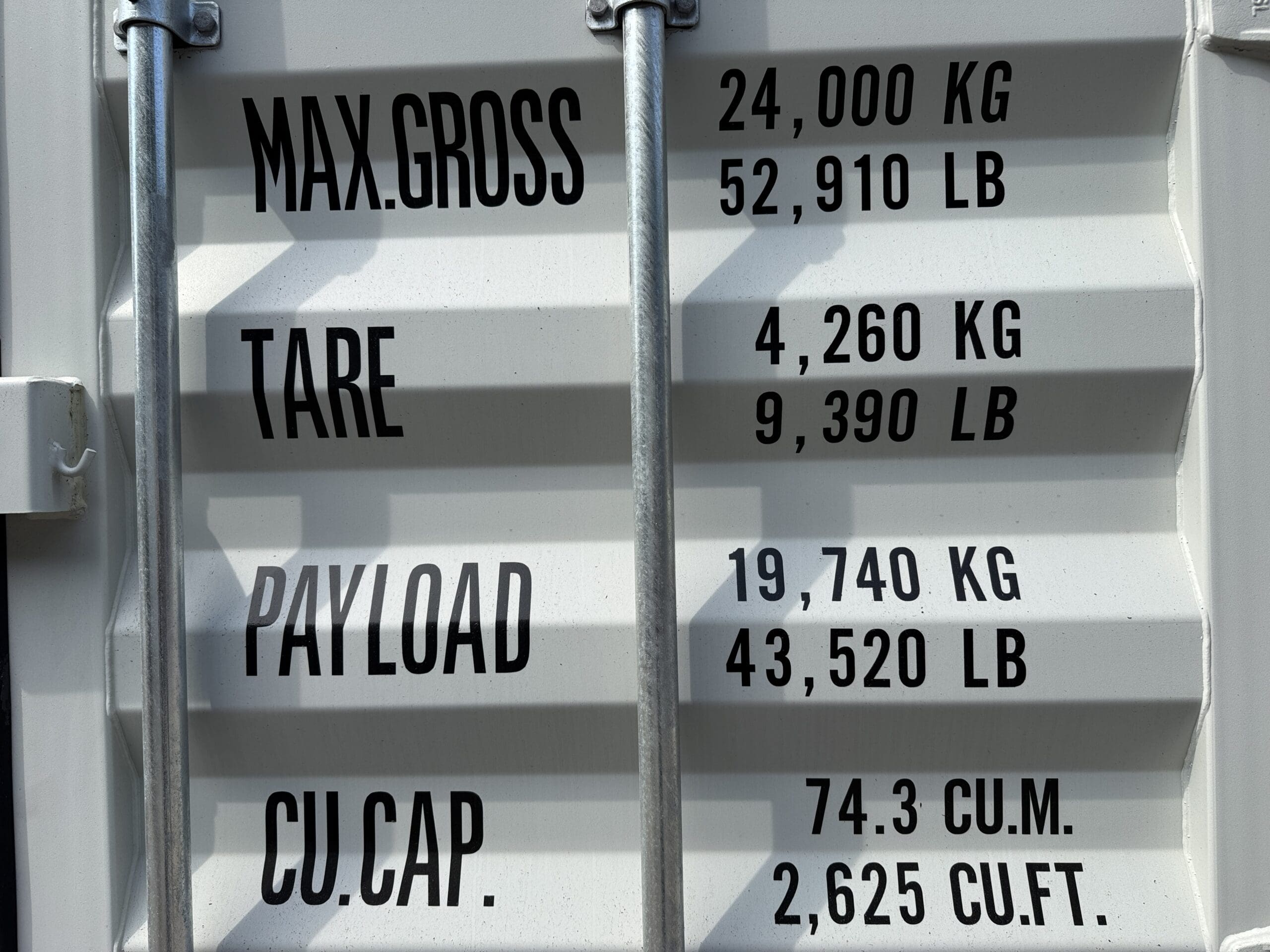 We sell 10’, 16′, 20’, 24′, 30′, and 40’ long containers. Containers are 8’6″ tall unless it is a high cube shipping container, then it is 9’6″ tall.