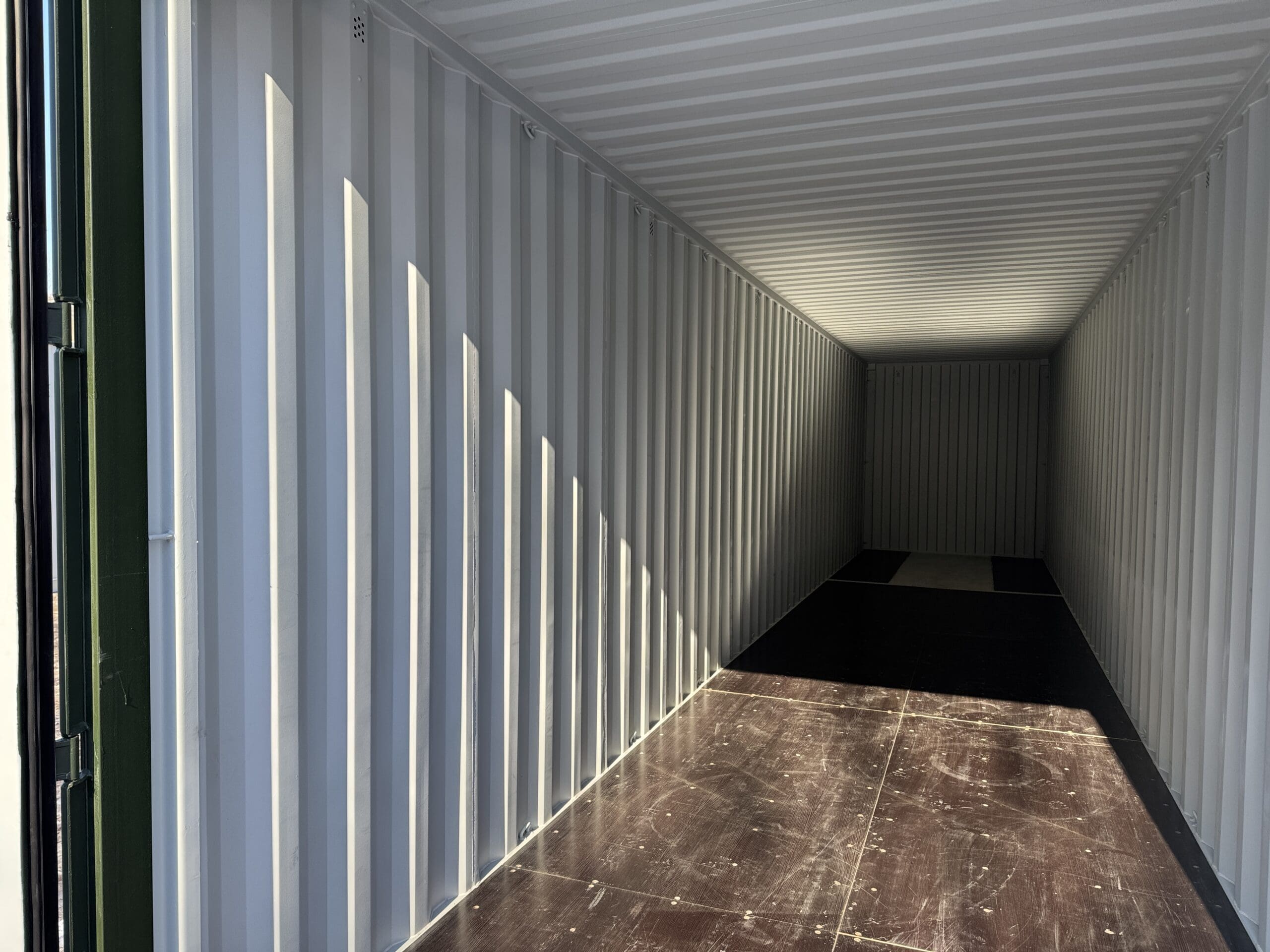 We sell 10’, 16′, 20’, 24′, 30′, and 40’ long containers. Containers are 8’6″ tall unless it is a high cube shipping container, then it is 9’6″ tall.
